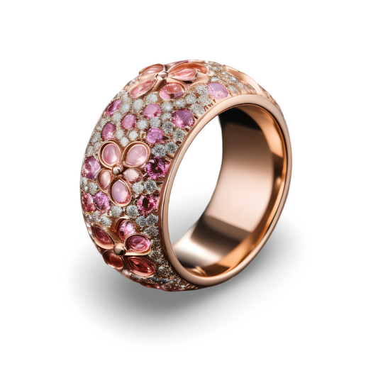 Cosmic Bloom Ring - 14K Solid Gold Diamond and Pink Tourmaline Ring